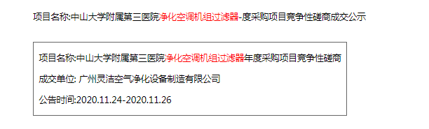 恭喜我司中標(biāo)中山大學(xué)附屬第三醫(yī)院凈化空調(diào)機(jī)組過(guò)濾器年度服務(wù)